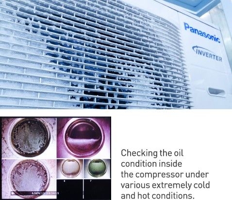 Sau khi kiểm tra hoạt động liên tục, Panasonic loại bỏ các máy nén từ một đơn vị ngoài trời chọn, tháo rời nó, sau đó kiểm tra các cơ chế nội bộ và các bộ phận cho sự thất bại có thể và độ bền. Điều hòa không khí Panasonic tiếp tục cung cấp hiệu suất thiết kế của họ trong nhiều năm, ngay cả sau khi hoạt động kéo dài trong điều kiện khắc nghiệt.