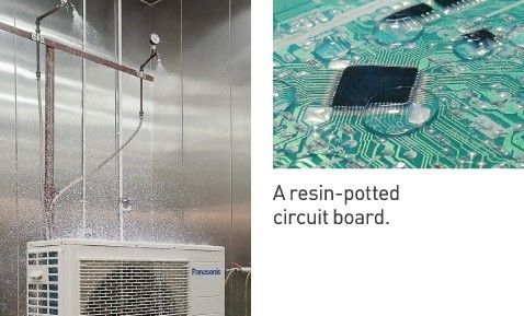 Các yếu tố ngoài trời, đó là tùy thuộc vào mưa và gió, được cung cấp với IPX4 tuân thủ không thấm nước. Vấn đề tiềm năng được kiểm tra bằng các xét nghiệm như tắm các bộ phận cua rmáy điều hòa Panasonic cho một số tiền định trước thời gian. Liên hệ với phần trên bo mạch in cũng nhựa chậu để ngăn ngừa các tác động gây ra bởi quá trình tiếp xúc không để thấm những giọt nước.