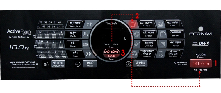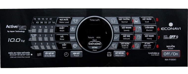 Cách sử dụng bảng điều khiển máy giặt Panasonic NA-F90X1LRV