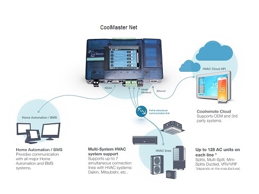 Gần đây, Cool Tự động hóa đã giới thiệu CoolRemote, một giải pháp điều khiển dựa trên web mà có CoolMasterNet nối với Internet cho phép điều khiển từ xa và giám sát các đơn vị HVAC từ các nền tảng điện thoại di động hoặc cố định. Các hoạt động là thân thiện với người dùng và cung cấp các biểu tượng dựa trên màu rất hấp dẫn để lựa chọn trực quan. Nếu không có nhu cầu cho Home Automation nhiệm vụ khác là kiểm soát HVAC tập trung, việc sử dụng kết hợp với CoolRemote VRV / VRF HVACs là một giải pháp hiệu quả lý tưởng được đánh giá cao của chủ nhà mà là thận trọng với năng lượng của họ dành.