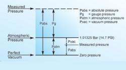Máy đo áp suất được đo bằng dụng cụ chỉ ra một sự khác biệt giữa áp suất của khí quyển và áp suất của khí hoặc chất lỏng. Do đó, cần thiết phải thêm áp suất khí quyển để đánh giá bài đọc để thiết lập áp suất tuyệt đối.