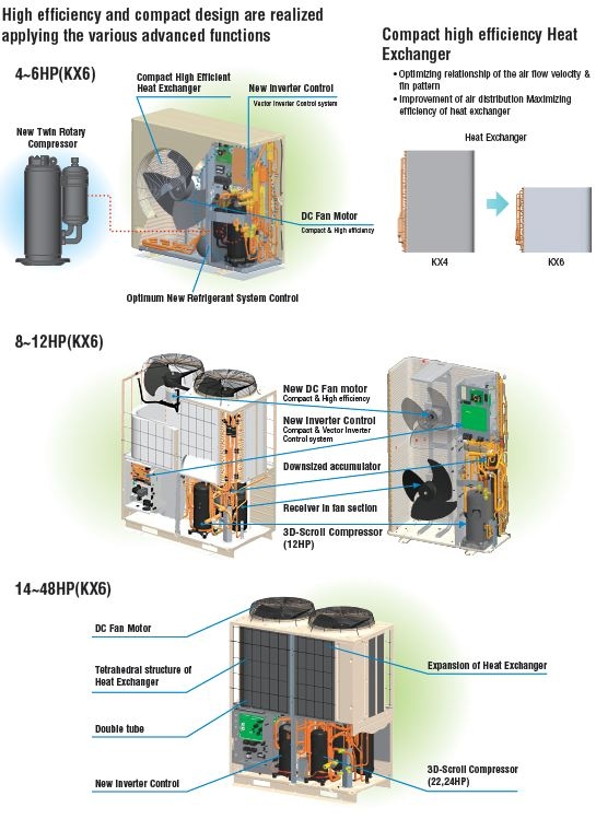 KXR - nơi làm mát hoặc sưởi ấm có thể được cung cấp tại bất kỳ đơn vị nội bộ bất cứ lúc nào. Hệ thống KXR cũng kết hợp tiết kiệm năng lượng, nhờ đó nhiệt không mong muốn được loại bỏ khỏi các khu vực ấm áp, và được chuyển thông qua các phương tiện để làm lạnh với khu vực cần làm nóng lạnh; Ví dụ, các phòng ở phía bắc và phía nam của tòa nhà