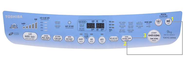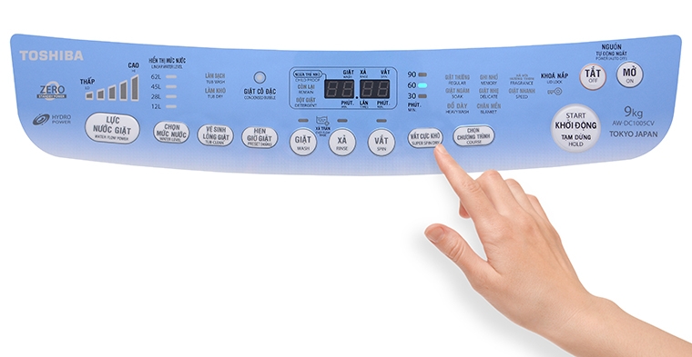 Cách sử dụng bảng điều khiển máy giặt Toshiba AW-DC1005CV 9kg