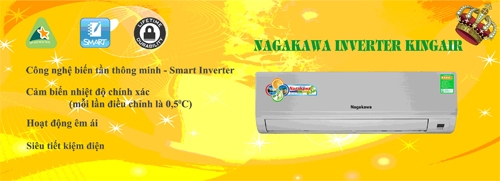 Điều hòa không khí Nagakawa Inverter KingAir. Tự hào là một trong những hãng đầu tiên (năm 2008) đưa ra thị trường dòng sản phẩm Điều hòa không khí công nghệ Inverter, bằng bản lĩnh và kinh nghiệm vốn có, năm 2015, Nagakawa Việt Nam tiếp tục phát triển thành công và đưa ra thị trường dòng sản phẩm Điều hòa không khí Nagakawa Inverter KingAir với Công nghệ biến tần thông minh – Smart Inverter, cảm biến nhiệt độ chính xác, hoạt động siêu êm và siêu tiết kiệm điện, được Viện nghiên cứu năng lượng Vinacomin chứng nhận mức tiết kiệm năng lượng tối đa theo tiêu chuẩn của VNEEP.