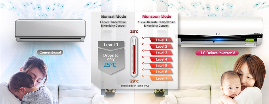 Giữ cho phòng bạn luôn được thoáng mát trong mùa mưa bằng cách loại bỏ độ ẩm thấp, duy trì nhiệt đố tối ưu, mang đến sự thoải mái và đồng thời tiết kiệm năng lượng cho gia đình bạn. Cảm nhận sự thoải mái nhất khi giữ chế độ Monsoon ở mức -0.5 ~ 0.5.