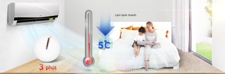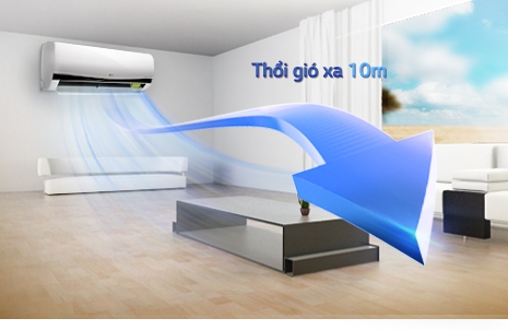 Điều hòa nhiệt độ LG với tốc độ lan tỏa khí nhanh và mạnh, xa 10m.