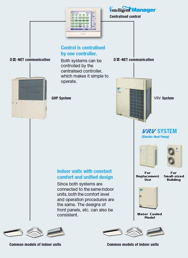 Daikin GHP có thể được kết hợp với các hệ thống VRV thông thường để cung cấp sự thoải mái và hiệu suất cuối cùng: